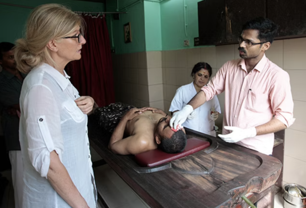 Gaëtane pendant sa visite dans un hopital Ayurvédique.